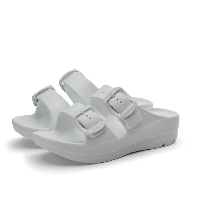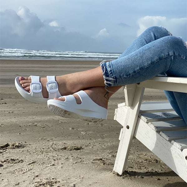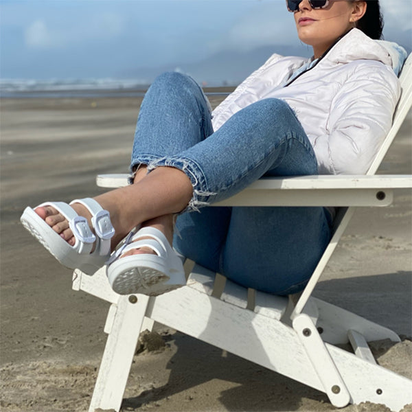 This beautifully designed sandal has an anatomically correct footbed and is offered in four colours. With a slight wedge and adjustable straps, it can be dressed up or dressed down. It is contoured to support the arches of your feet and has a deep heel cup with great medial arch and metatarsal support. This is an excellent sandal for people who love arch support and cushioning, yet want something a little dressier than a flip flop